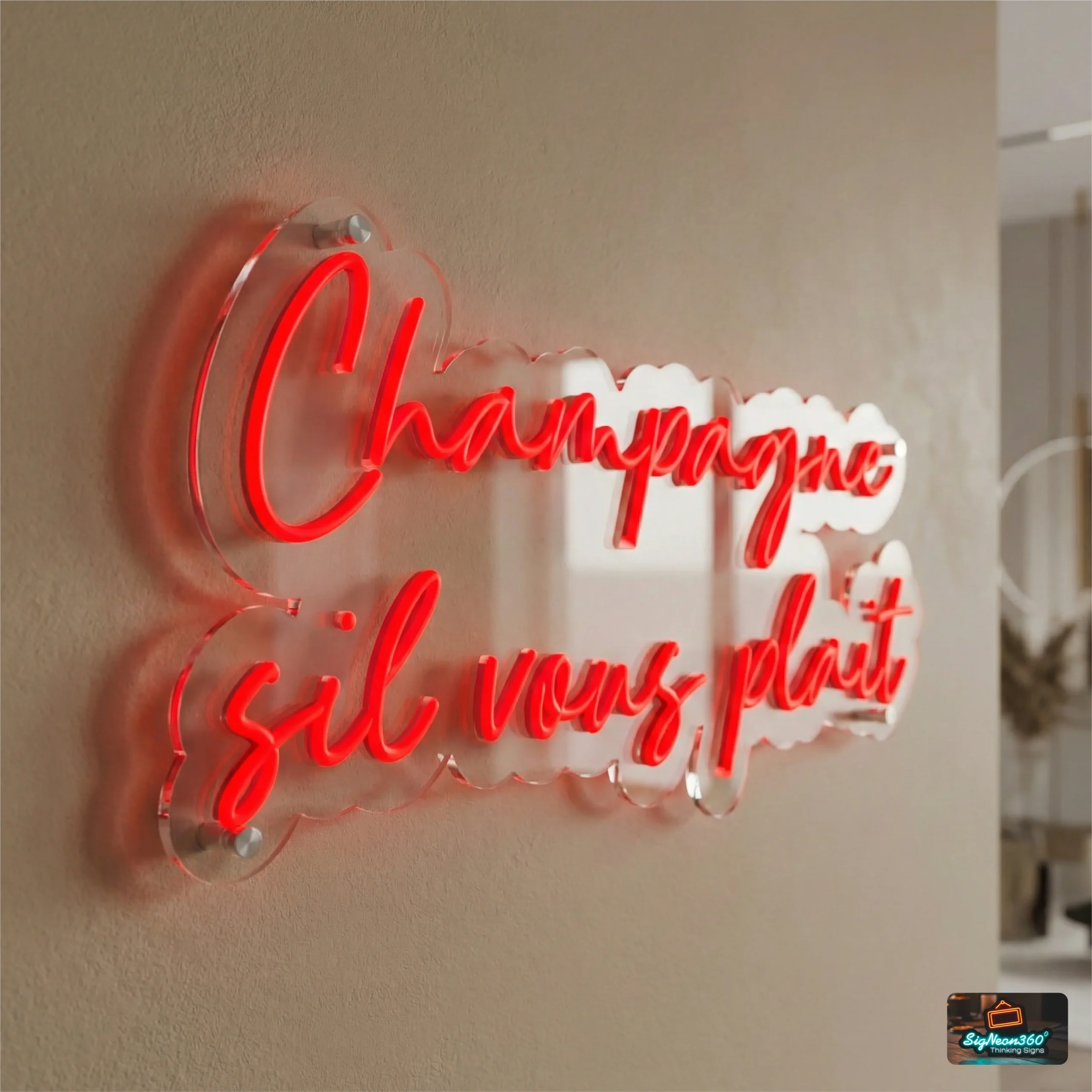 Champagne Sil Vous Plait Neon Sign – Custom LED Lights for Home Bars & Pubs