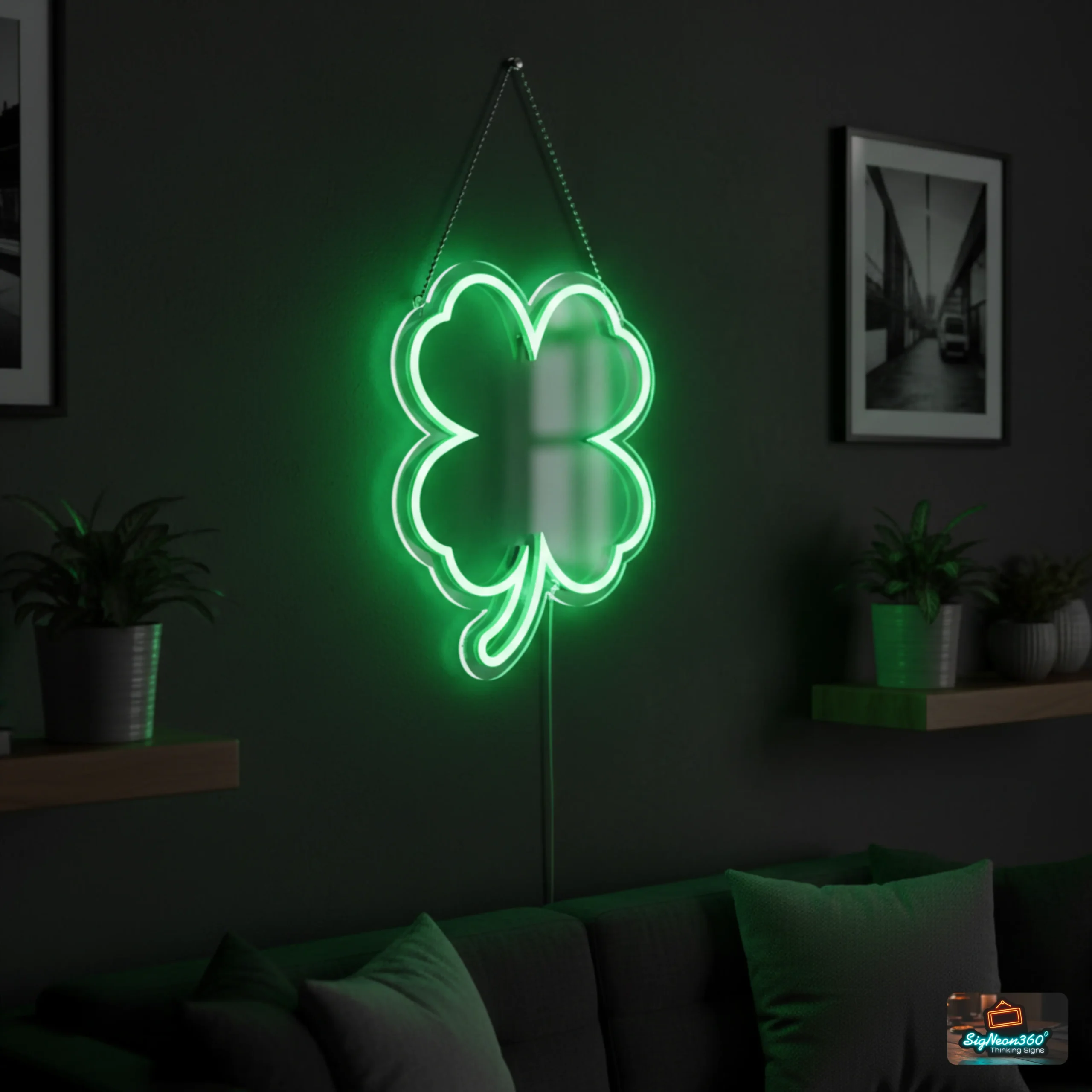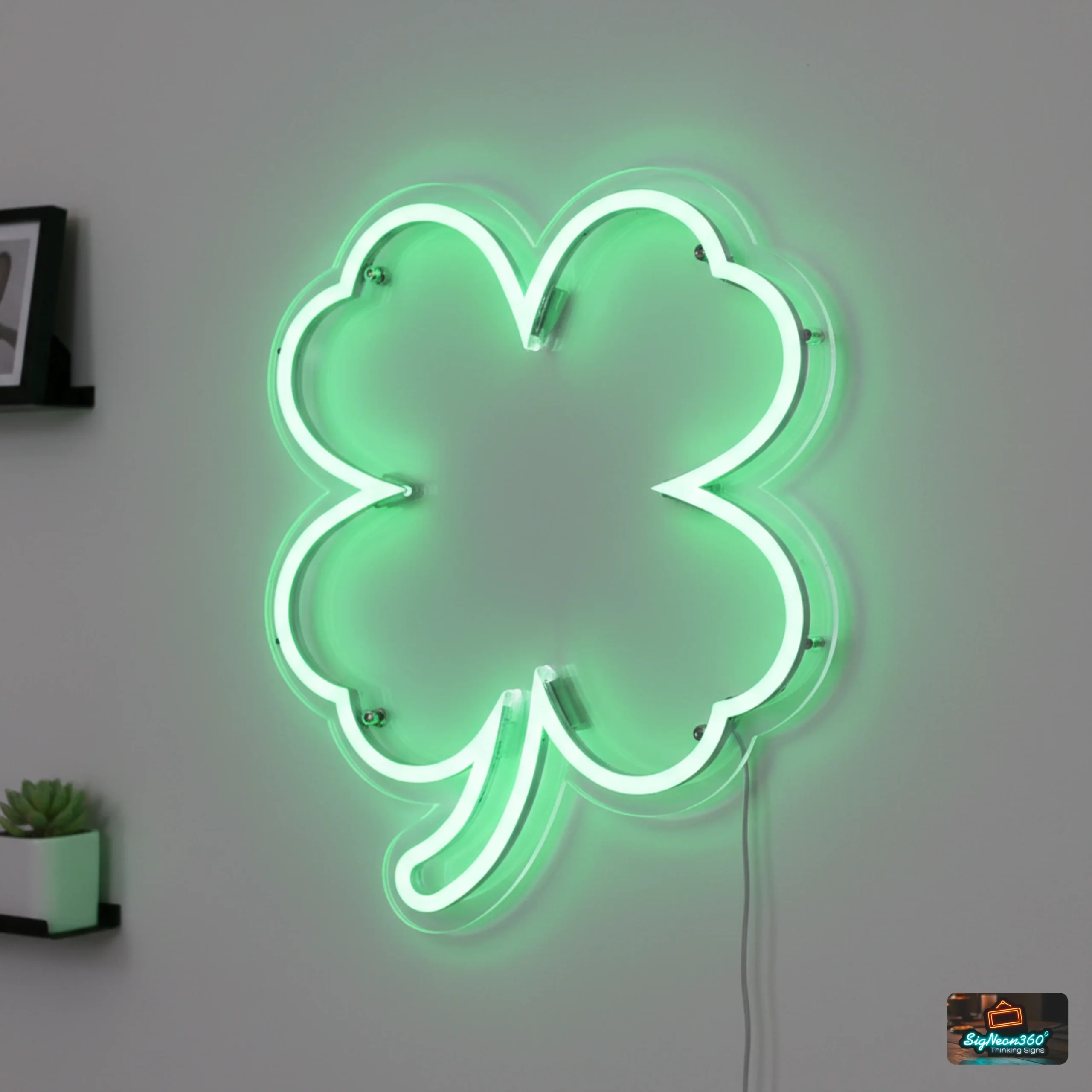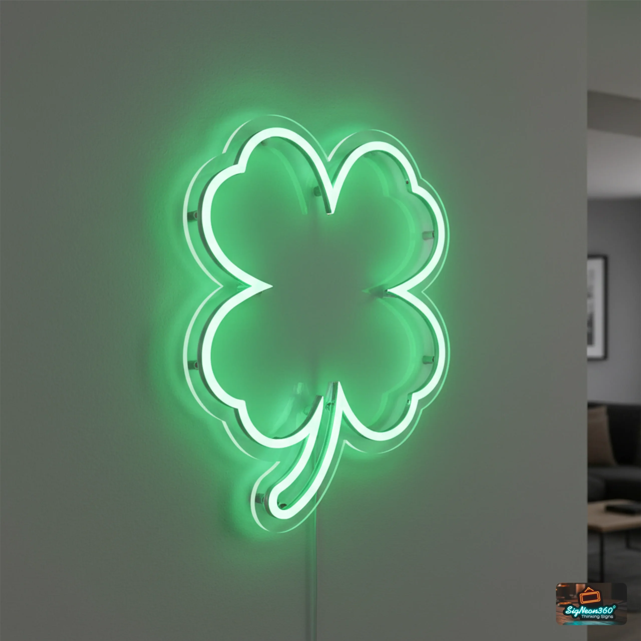 Four-Leaf Clover Neon Sign – Custom LED Lights for Home Bars & Pubs