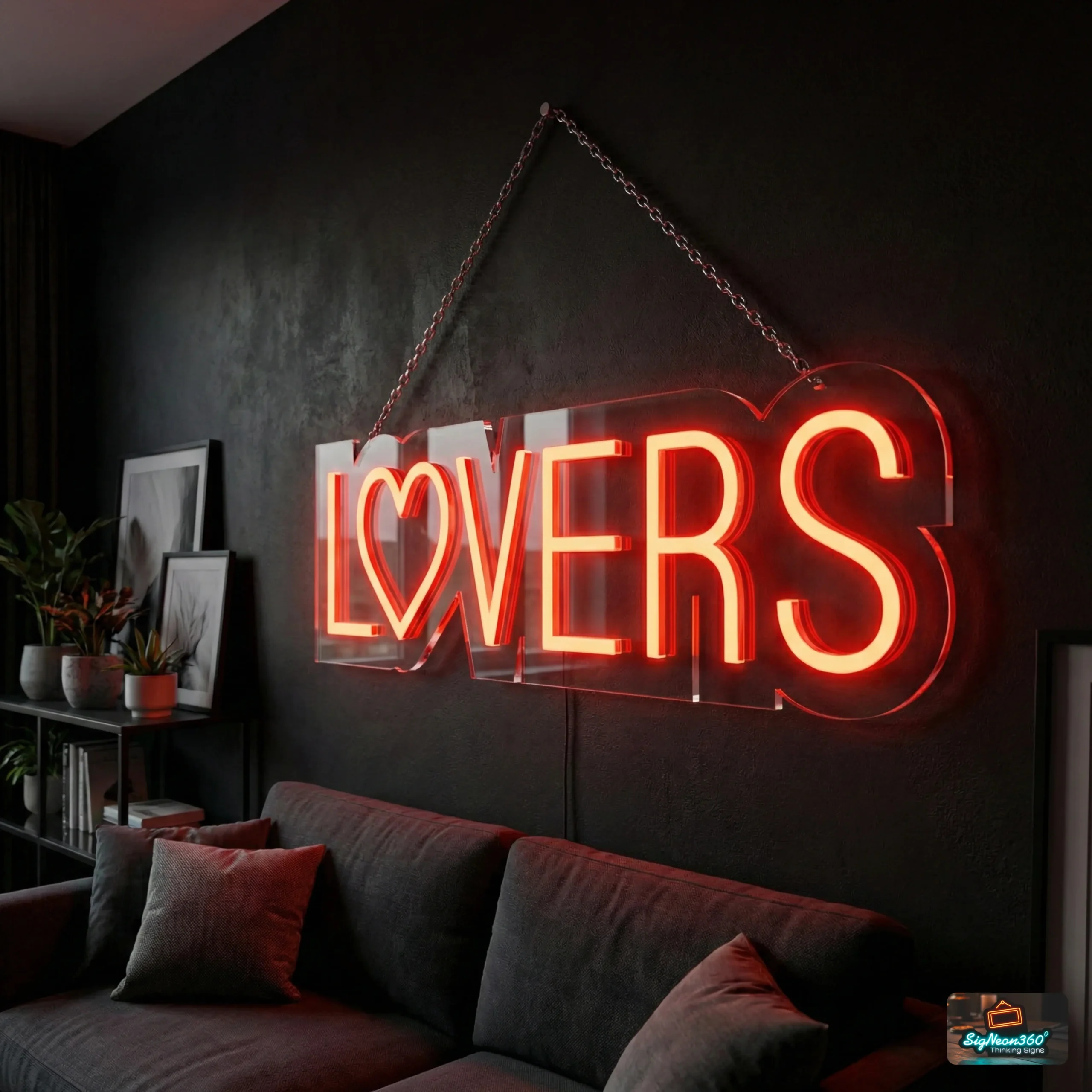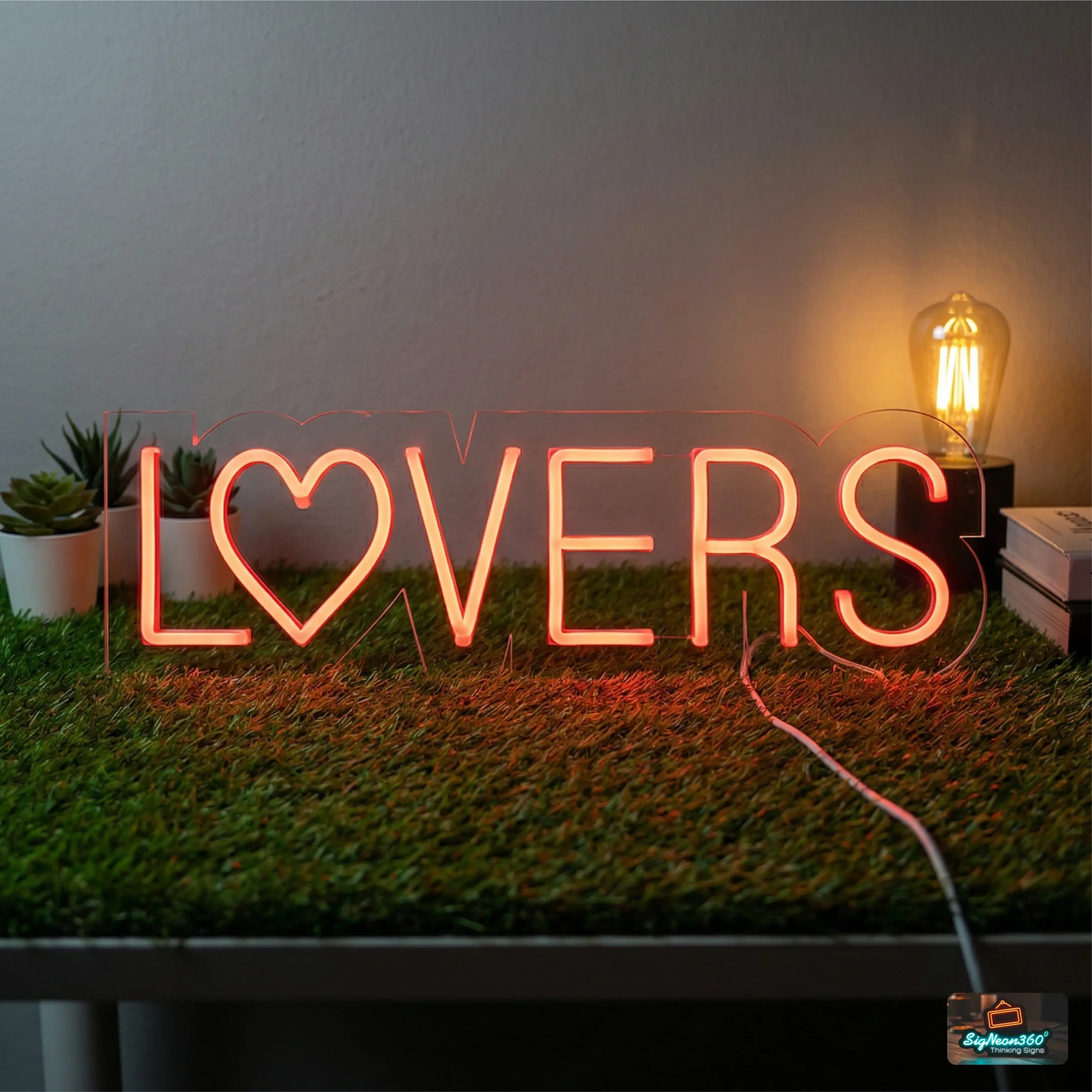 A bright Lovers Neon Sign creates the perfect romantic proposal backdrop – one of many designs to light up your big day.