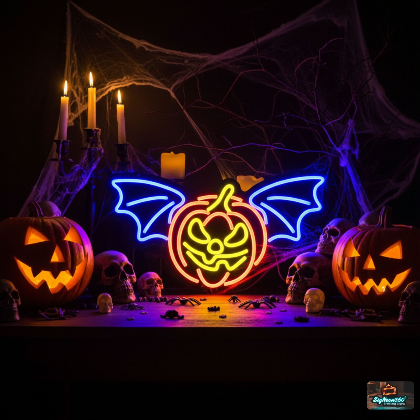 Looking for something unique? Design your own Halloween neon sign with Signeon360’s custom service. We specialize in creating bespoke neon signs that blend cutting-edge LED technology with your creative vision. Whether you want to immortalize a favorite scary quote, your family name in a haunted house style font, or a custom logo for a Halloween event, we’ve got you covered. Our team will work with you to bring your idea to life in neon, delivering a one-of-a-kind decoration that truly stands out.